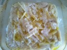 オリーブオイルを塗ったグラタン皿にグラタンを入れ、シュレットチーズ→パン粉→オリーブオイルを掛ける。