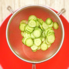 きゅうりを輪切りにし、お塩をふって暫く置き、揉みます。洗い流した後、キッチンペーパーで水分をしっかり切っておく。