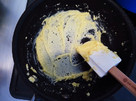 フライパンにバターを溶かし、薄力粉をヘラでのばしながら弱火で炒める。