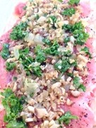 豚肉の上に敷く。巻くと材料がはみ出るので、端の方は、少しあけておく。
