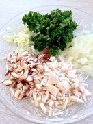 ★スタッフィング★チーズ以外の材料はそれぞれみじん切りにする。
