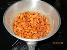 生のアーモンドでしたらオーブンで180度で10分~15分加熱生の状態より、少し色が濃くなったら(狐色)OKです