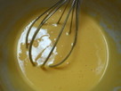 卵黄と砂糖を白っぽくもったりしてくるまで良く混ぜます。