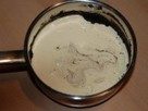 黄身ト砂糖のクリーミーを溶けチョコレートに足します。