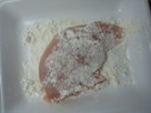 むね肉の皮をとり1cmくらいの厚さに切ります。