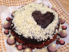 ホワイトチョコをスライサーで削って、ハート型を使って周りにトッピングしました♪