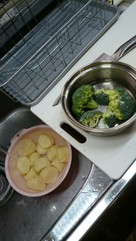 ブロッコリーは先を使います!先を切り洗いジャガイモはメークインを半分位に切る