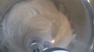 メレンゲを作ります。卵白を泡立てて、羽に泡がかかるようになれば2回に分けて砂糖を加えて逆さにしても落ちない位泡立てます
