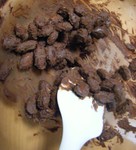 良く冷めたら、テンパリングした、チョコを3回に分けて、その度1回ずつ良く混ぜて3回で全部入れコーティングする。