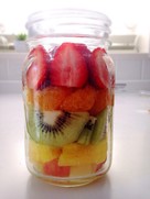 1cm角くらいにカットした缶詰の桃を蓋が閉まるギリギリのところまで詰める。最後にさくらんぼを入れて下さい。