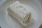 豆腐はキッチンペーパーに包んで10分おき、水切りします。