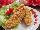 ささみを取り出し、水溶き小麦粉に付属のゴマを混ぜ、くぐらせたら、粉砕らーめんをまぶす。