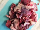 すじ肉は一口大に切って、塩コショウして、お肉にもみ込みます。