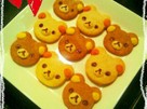 〈リラックマ〉プレーン・ココア生地をクマの型抜きで型抜き。プレーンで口周り、耳部分はリラックマ黄色・コリラックマピンク。