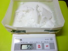 冷蔵庫から出したばかりでカチカチのココナッツ油。ナイフで削って出しました。