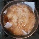 7~8分煮たら、残りの●の調味料、しょうゆを入れて更に煮ます