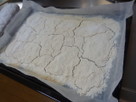 薄力粉160gを振るい、180℃に温めたオーブンで焼き色が付くまで20分程度焼く。(クッキングシート等を天板に敷く事)