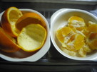 いよかんはよく洗います。いよかんを縦4つ割りにして、実を取り出します。