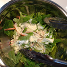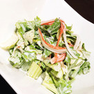 ①をよく水切りし、裂いたカニカマとさっくり混ぜ合わせます。