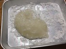 さらにもう1分、様子を見ながら加熱しよく混ぜる。(全部で4分加熱)片栗粉をしいたバットなどにあけ、10等分する。
