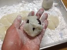 包み終わりは餅同士を指でつまんでしっかり閉じる。