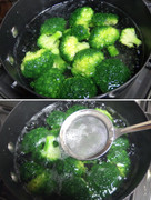 ブロッコリーを小房に切って洗い、沸騰しているお湯1000mLに塩小さじ2(分量外)を加えて2~3分お好みの固さで煮る。