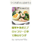 ブロッコリーと海老も◎印の調味料と混ぜ合わせてから工程3のゆで卵を乗せる。※卵も混ぜると崩れるので乗せるだけです^^;