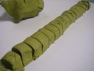 生地を2つに分け、細長く伸ばしてから、包丁で、20個位にカットする。