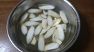 皮を剥いた山うどを切り、酢入りの水に30分くらいつけた後、水分を拭き取る。