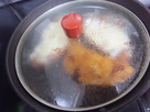 ソースが全体に絡み、水分が少なくなったらお肉の上にチーズをのせる。