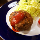 ▼お好みでハンバーグを器に移し、残った脂にケチャップ、ウスターソース、赤ワインを入れて煮込みソースを作ります。
