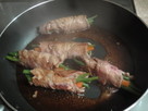 人参といんげんを5等分にして肉できつく巻き上げる。